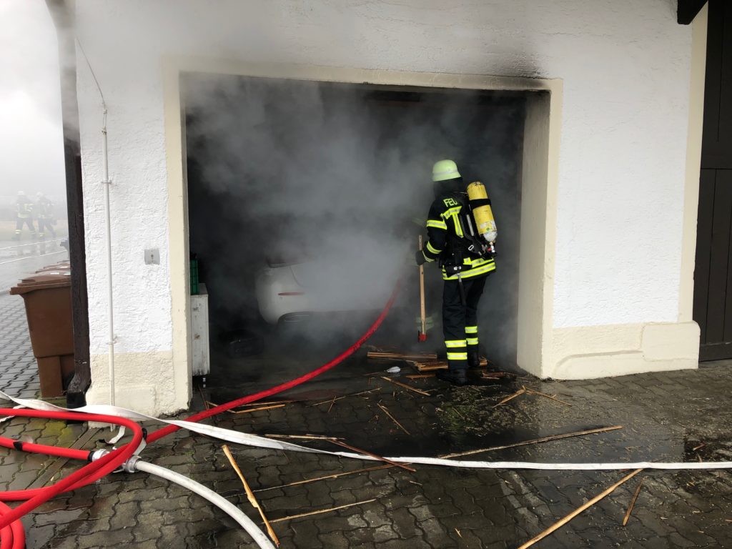 Der Brand, der im Bereich einer Werkbank ausgebrochen war, konnte nach dem Entfernen des PKW aus der Garage vollends gelöscht werden. Ein Übergreifen in weitere Gebäudeteile konnte erfolgreich verhindet werden.
