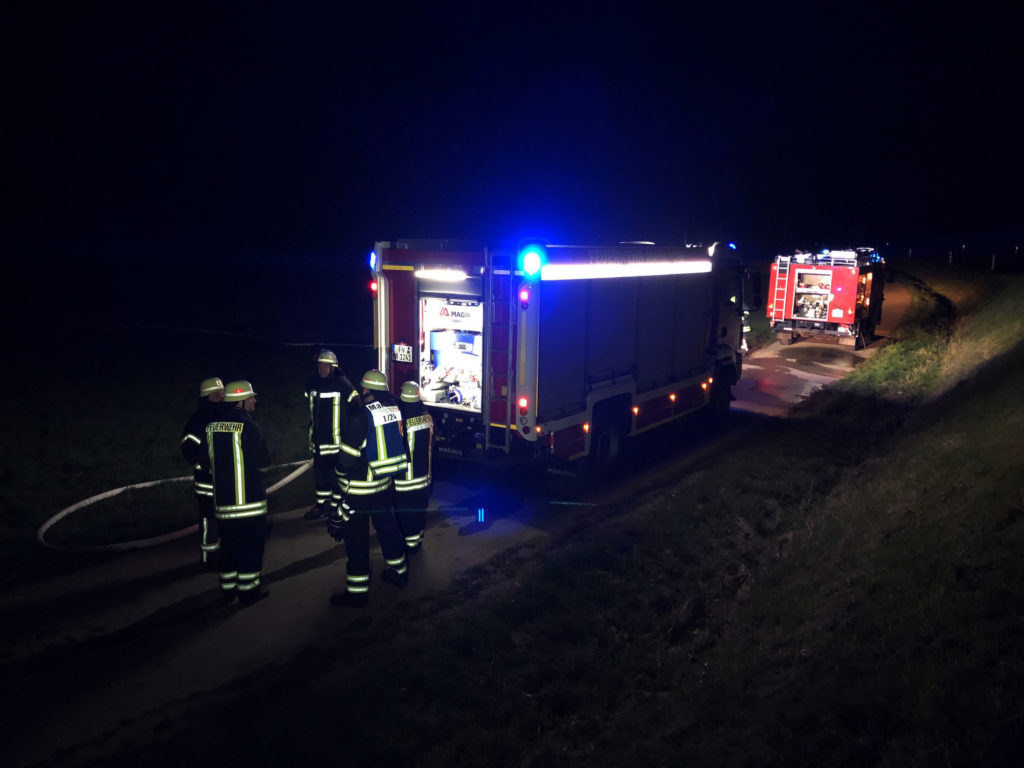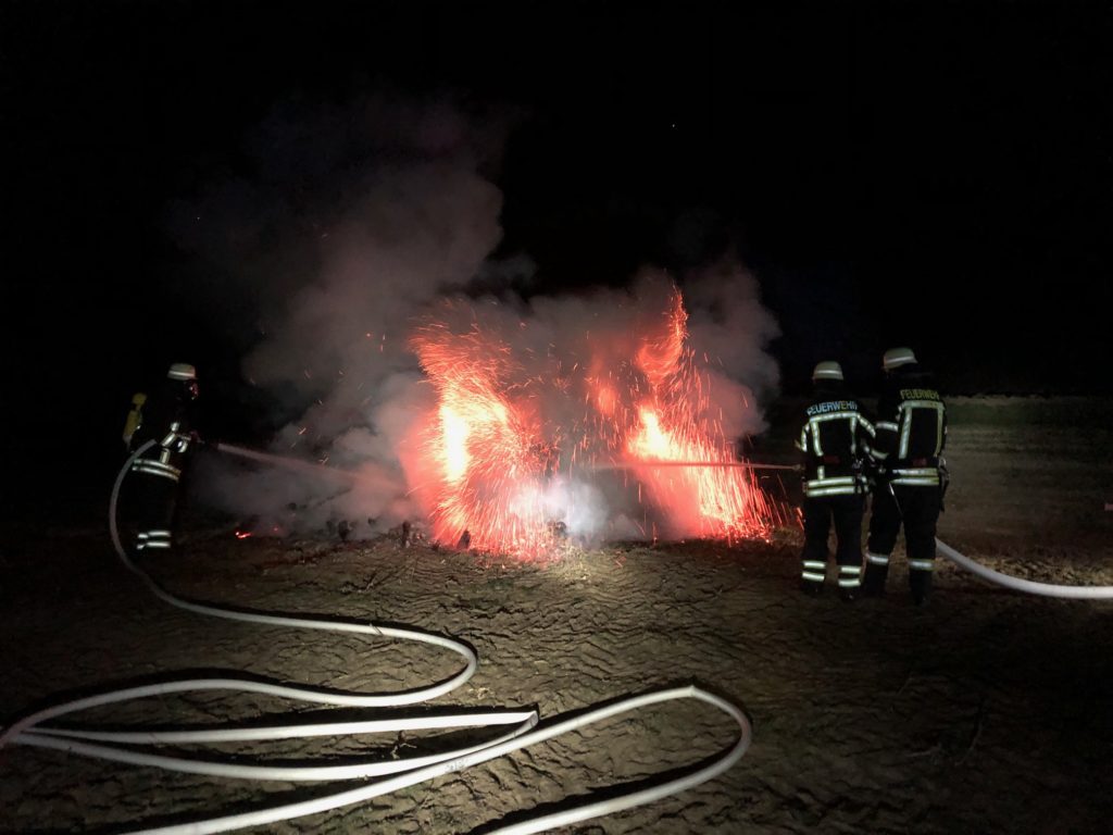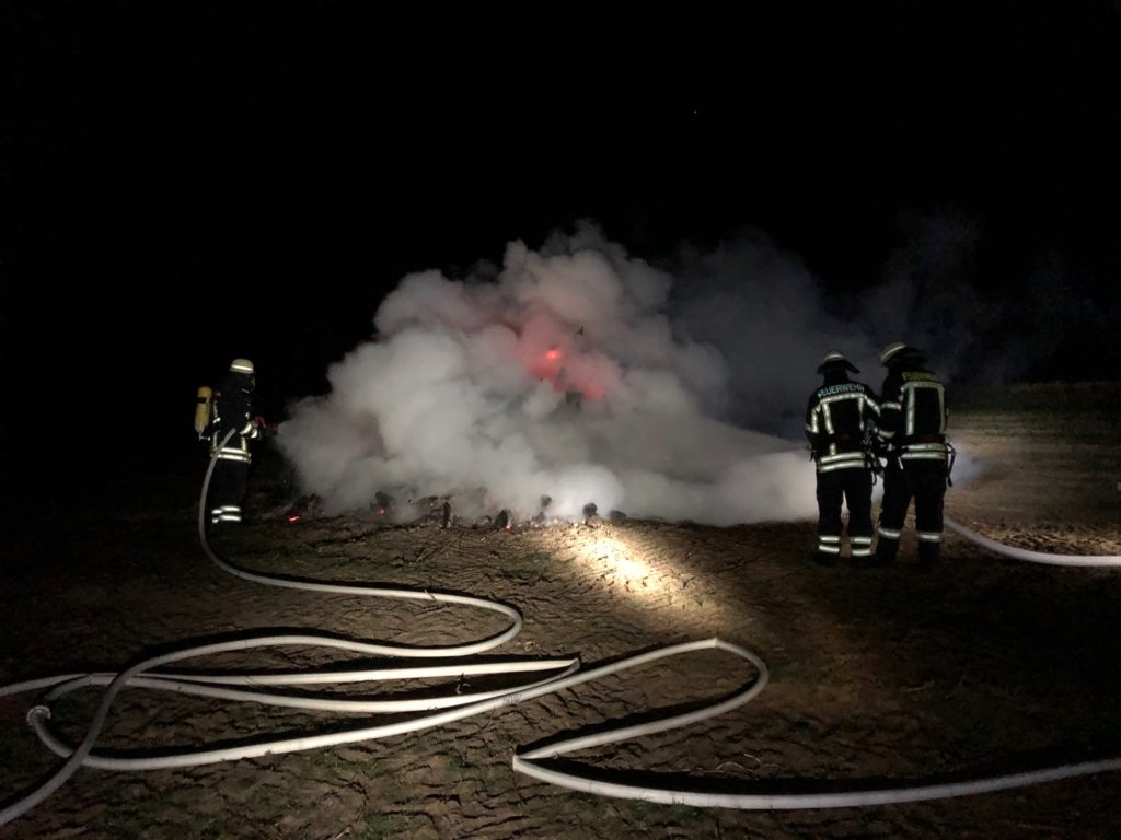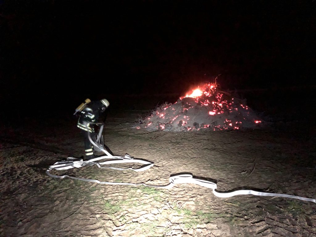 Bei Eintreffen der Feuerwehr zeigte sich, dass ein größerer Holzhaufen von 5 Meter Durchmesser und 2 Meter Höhe noch teilweise brannte. Eine Gefährdung konnte wegen des starken Windes nicht ausgeschlossen werden.