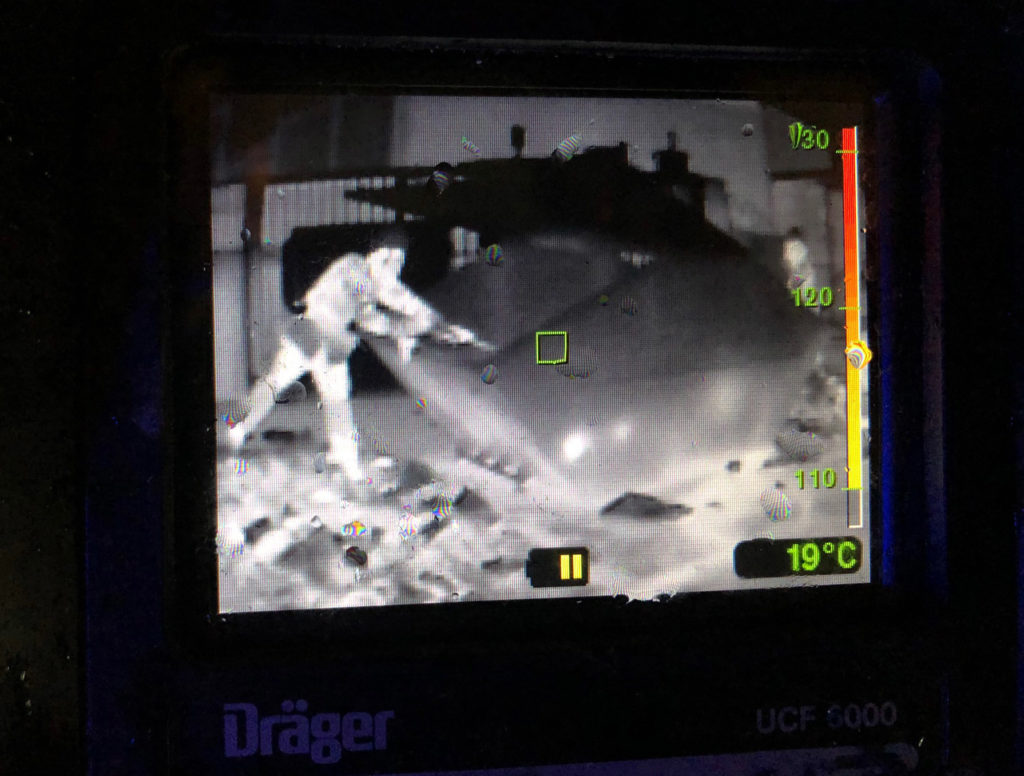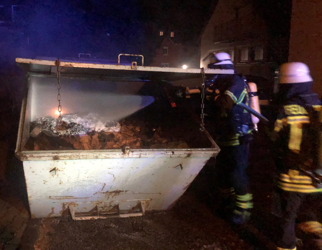 Dieses mal musste wir den Container per Hand mühsam teilweise entleeren und den Inhalt ablöschen, um jetzt endgültig das Glutnest zu ersticken.