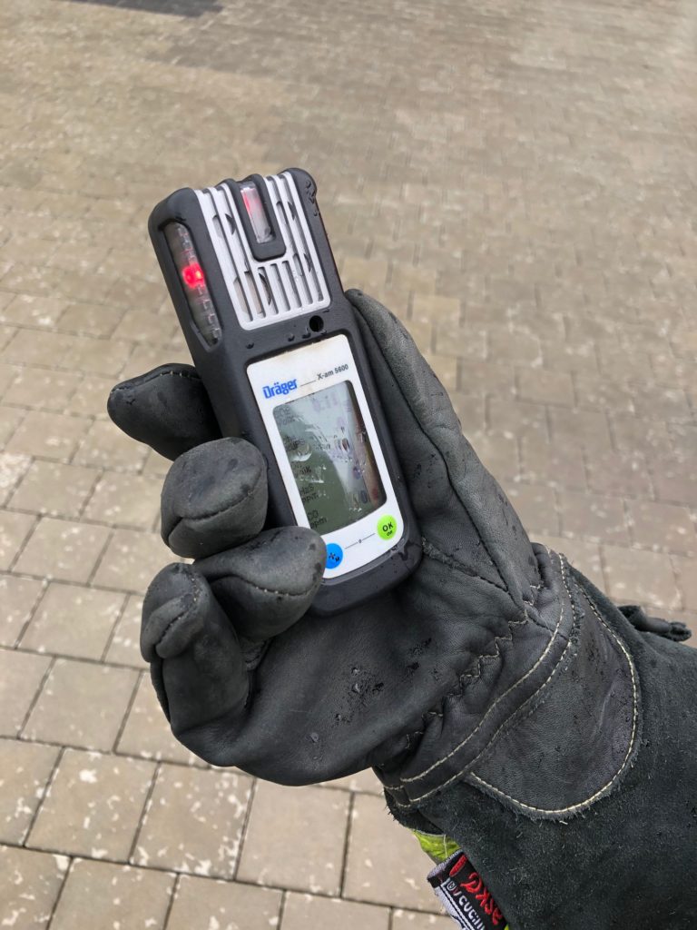 Die Maßnahmen der Feuerwehr waren, das weiträumigere Absperren der Einsatzstelle und das Ausmessen der angeblichen Schadensstelle mit dem Ex-Warngerät durch einen Trupp unter schwerem Atemschutz. Hier konnte ebenfalls keine Feststellung getroffen werden.