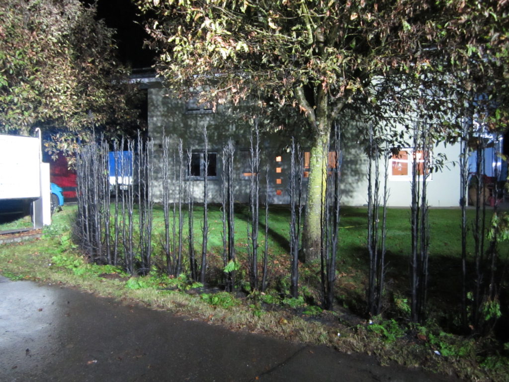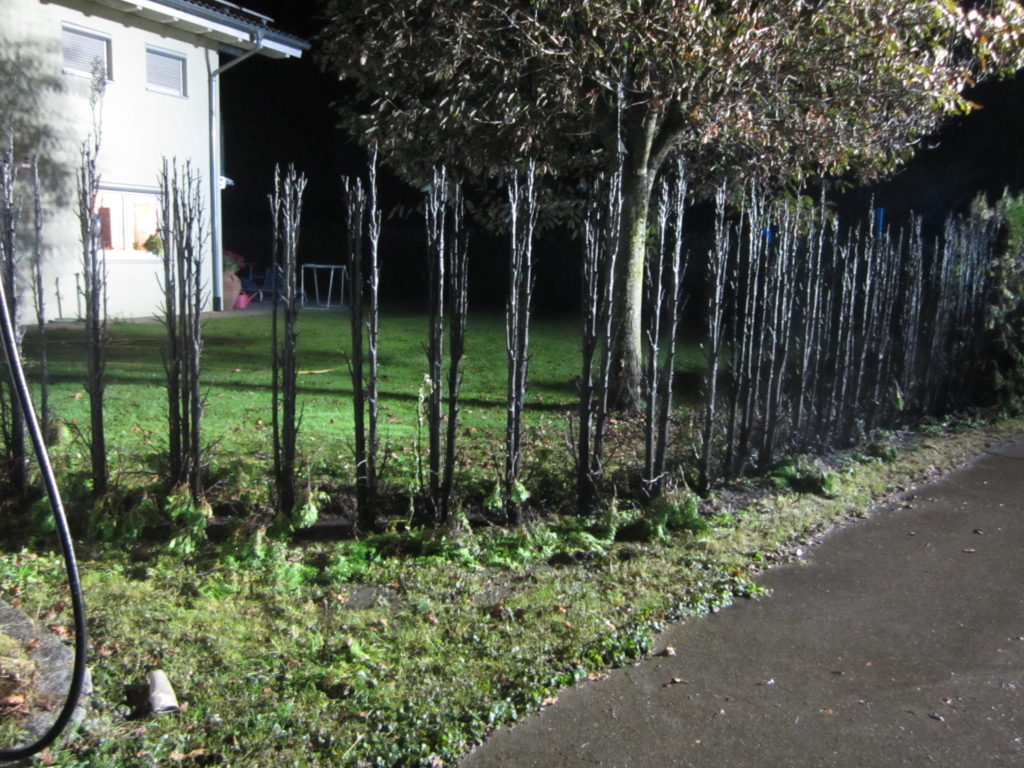 In der Röntgenstraße brannte eine Hecke, die bei Eintreffen der Feuerwehr allerdings schon weitgehend von Bewohnern mit einem Gartenschlauch abgelöscht worden war.