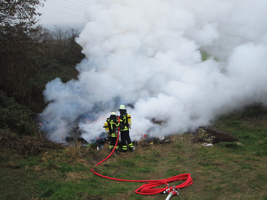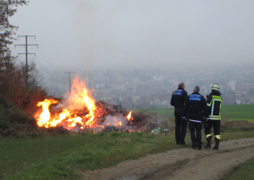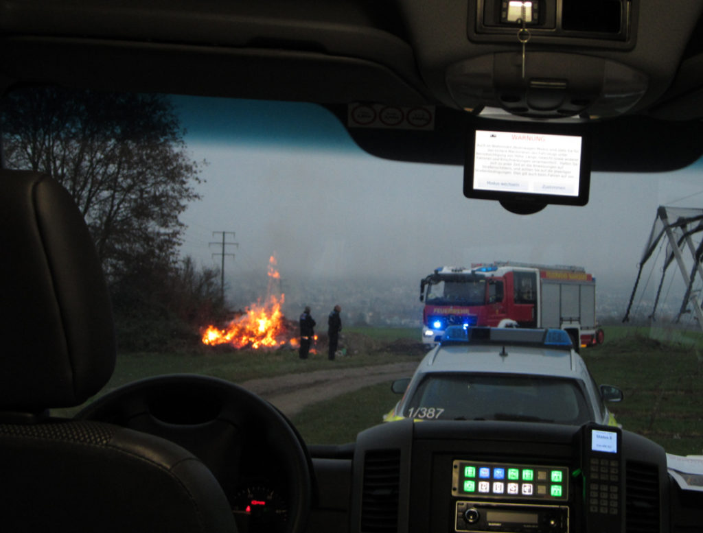 Die Polizei hatte uns zu dem brennenden Haufen zwischen Bürgerberg und Stüblehof angefordert.