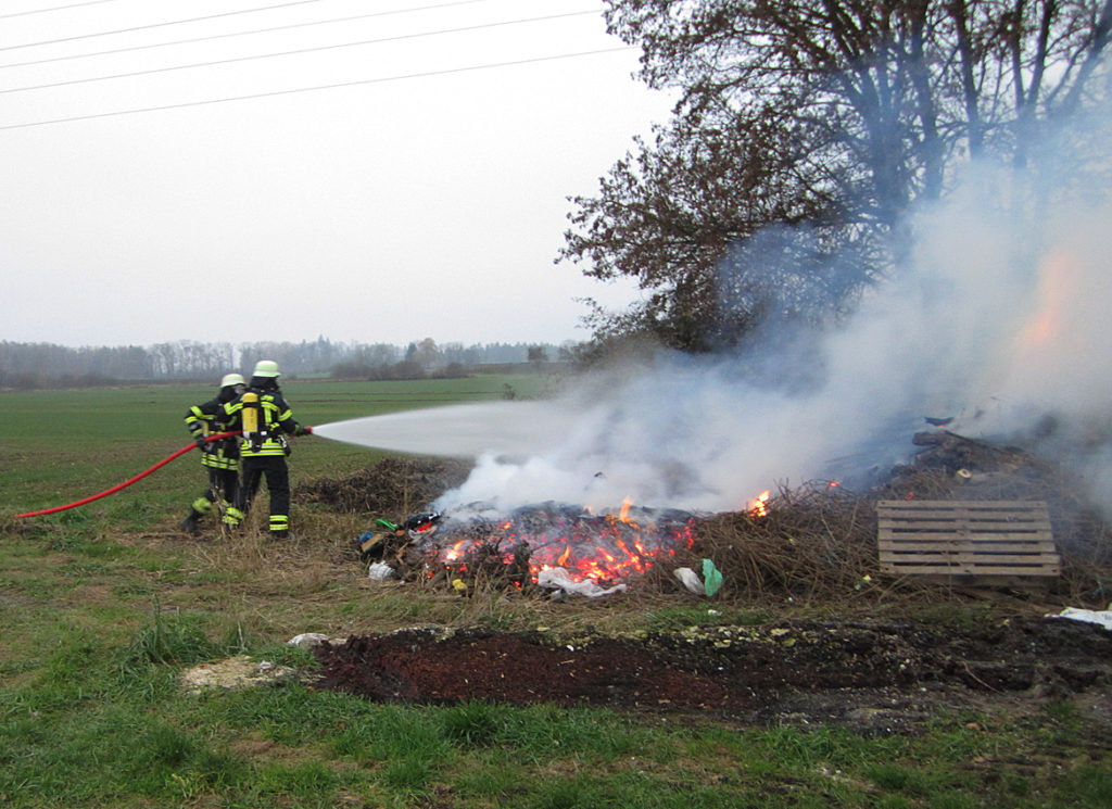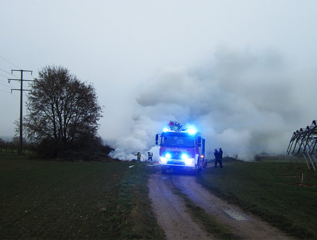 Die etwas abgelegen Einsatzstelle, die nur über Feldwege anfahrbar war, war dann gut über die Rauchwolke lokalisierbar.