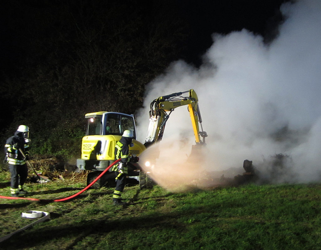 Ein vom Eigentümer des Feuers, der dann von der Polizei ermittelt werden konnte, organisierter Bagger zog die Glutreste auseinander und ermöglichte so ein besseres Ablöschen.