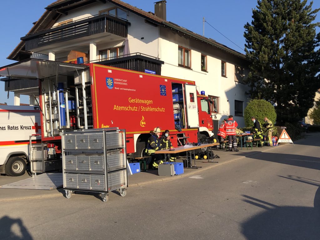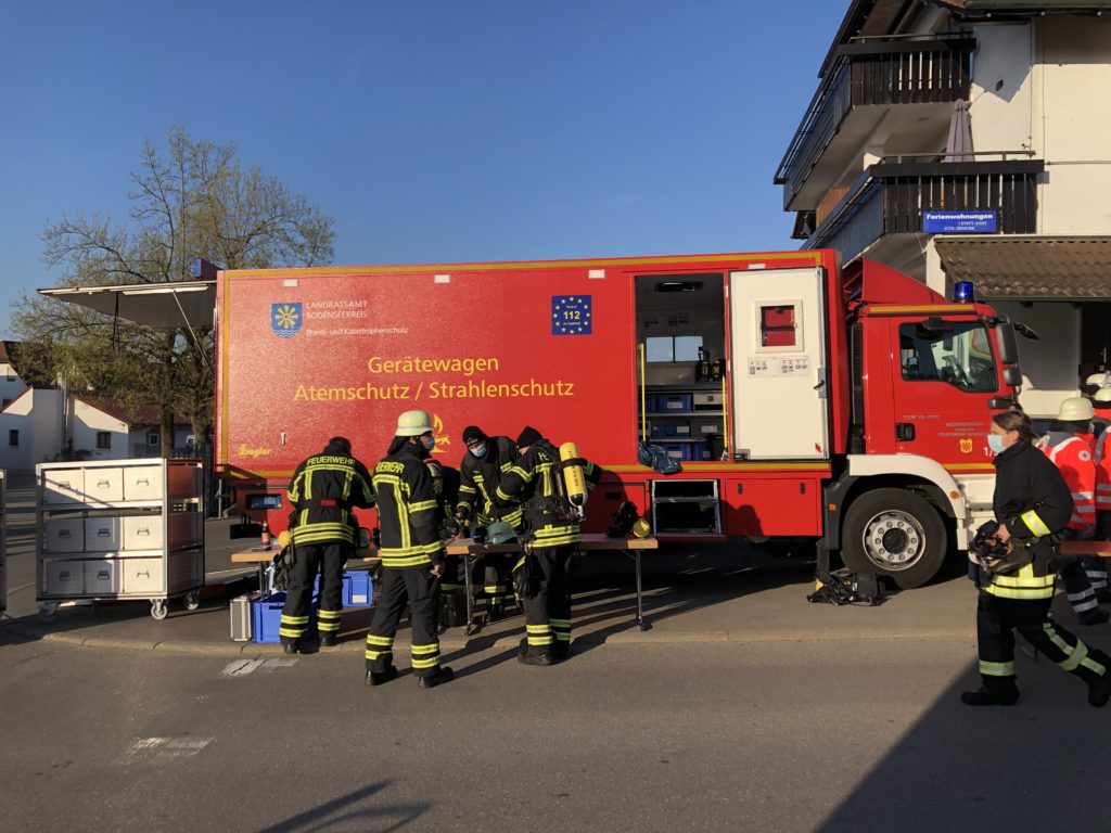 Erneut wurde am frühen Dienstagmorgen die Schleife “Gerätewagen Atemschutz – Strahlenschutz” mit dem GW A/S nach Meersburg alarmiert. An der Einsatzstelle von gestern war der Brand wieder ausgebrochen.