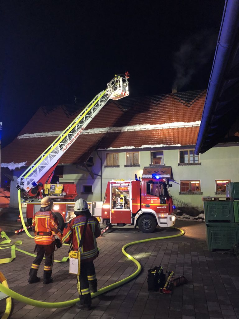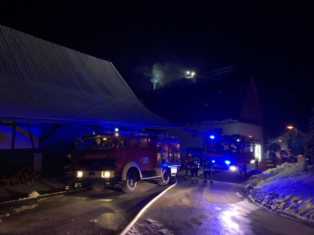 Um kurz nach 18 Uhr wurde wegen eines Kaminbrandes in einem Einfamilienhaus mit Ökonomieteil in Gangenweiler, zwei Abteilungen der Freiwilligen Feuerwehr Markdorf und die Freiwillige Feuerwehr Oberteuringen alarmiert.
