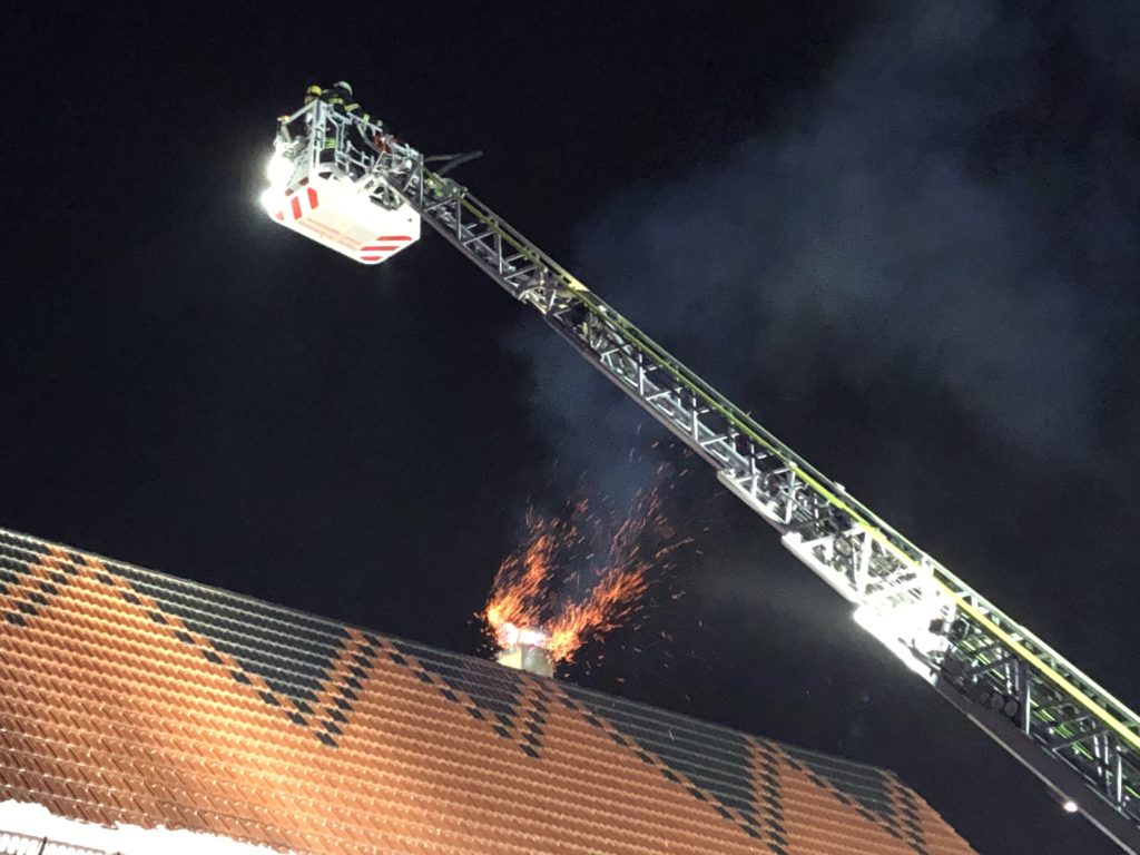 Bei Eintreffen der ersten Kräfte aus Oberteuringen mit dem Löschgruppenfahrzeug LF10/6 (FL OT 1/42-1) war klar Funkenflug aus dem Kamin erkennbar.