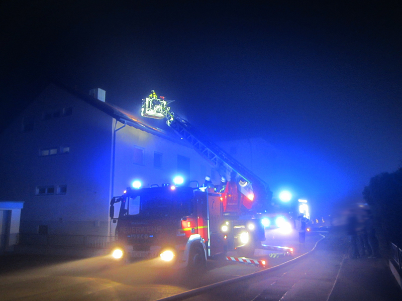 Als Erstmaßnahme wurden Trupps zur Menschenrettung ins Dachgeschoss, sowie ein Angriffstrupp zur Brandbekämpfung im 1. OG eingesetzt.