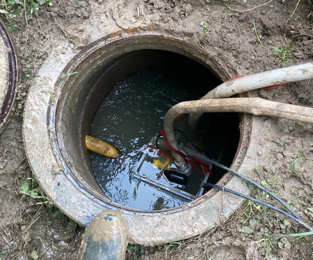Hier wurde mit einer anderen Pumpe leergepumpt und diese vor Ort gelassen.