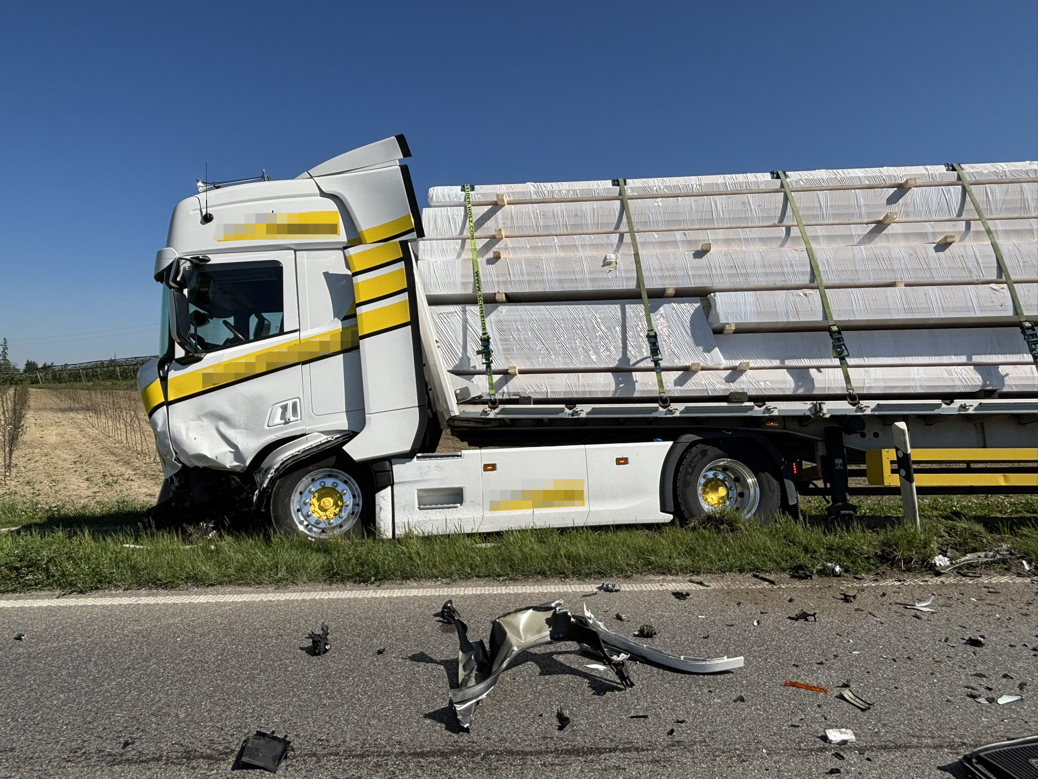 Die Ladung auf dem Sattelauflieger hatte sich durch den Aufprall verschoben, lag aber noch sicher auf. Hier waren keine Sicherungsmaßnahmen durch uns notwendig.