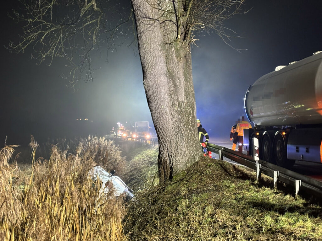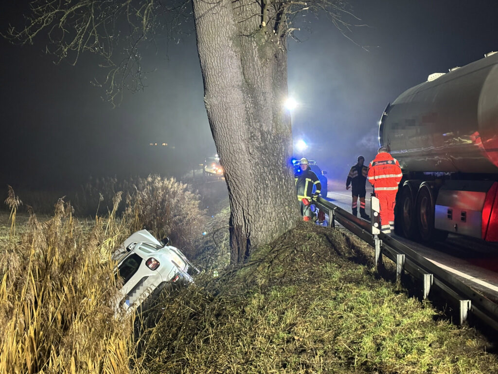 Bei unserem Eintreffen war der Fahrer bereits aus dem Fahrzeug befreit.