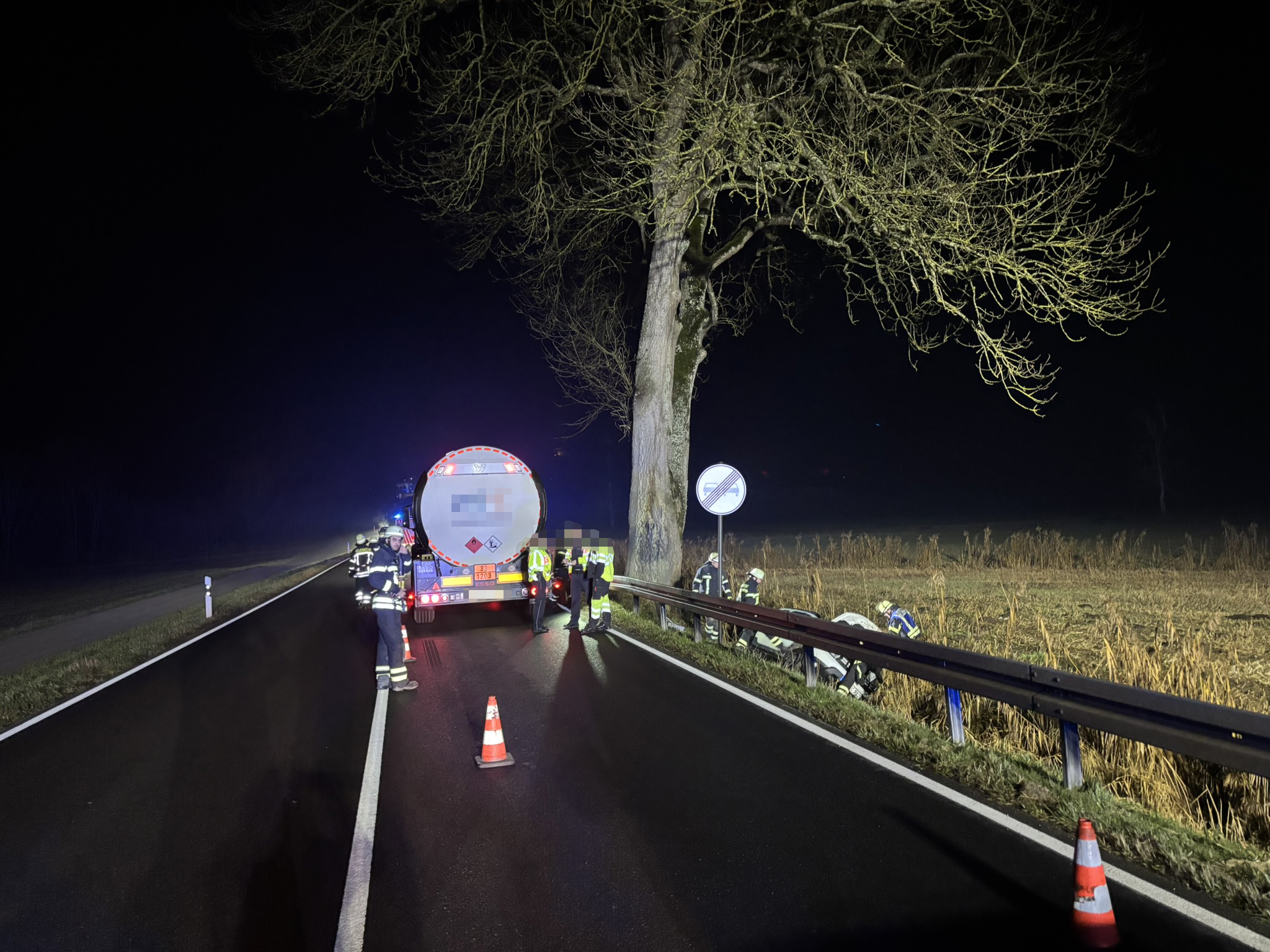 Bei unserem Eintreffen war der Fahrer bereits aus dem Fahrzeug befreit.