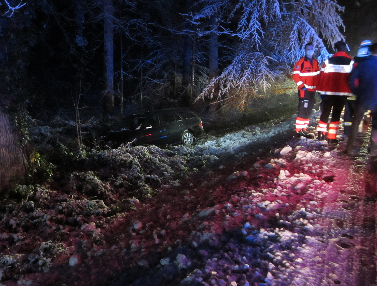 Vermutlich aufgrund der winterlichen Straßenverhältnisse ist ein Autofahrer am Mittwochabend auf der K7746 im Wald zwischen Abzweig B33 und Hagnau von der Straße abgekommen und mit seinem Fahrzeug in den Graben gerutscht.