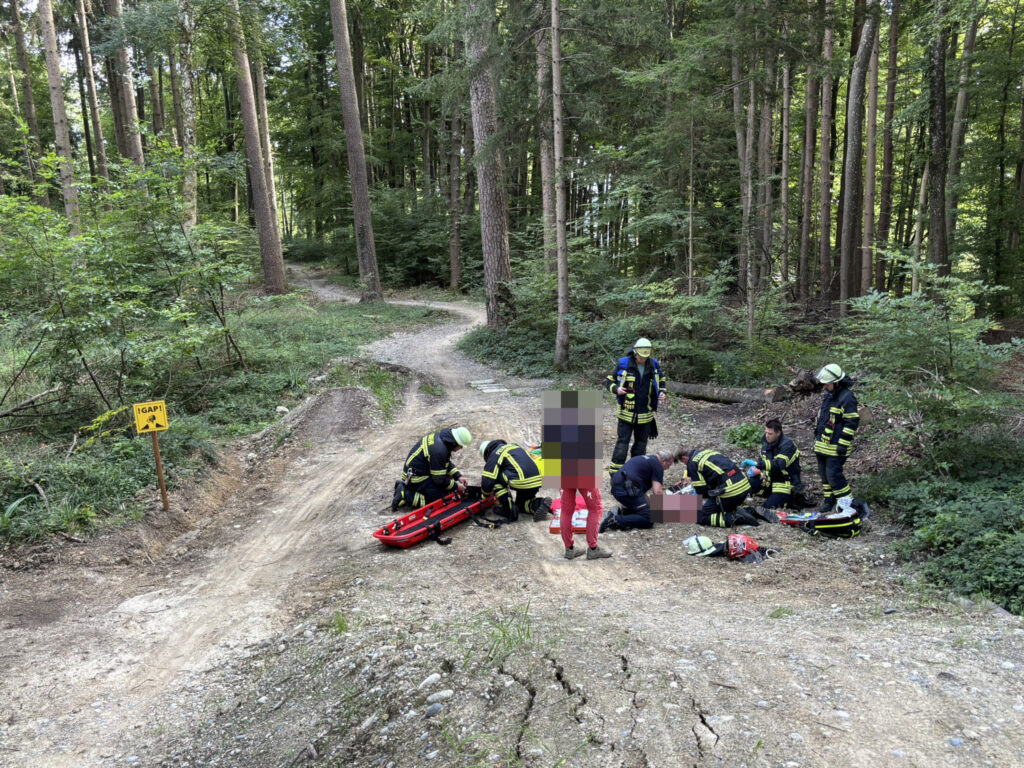 Während der vorherige Einsatz anlief, wurden wir bereits zum Nächsten alarmiert. Auf der Mountainbikestrecke des Gehro-Trail am Gehrenberg oberhalb Hepach war eine Bikerin schwer gestürzt und hatte sich verletzt.
