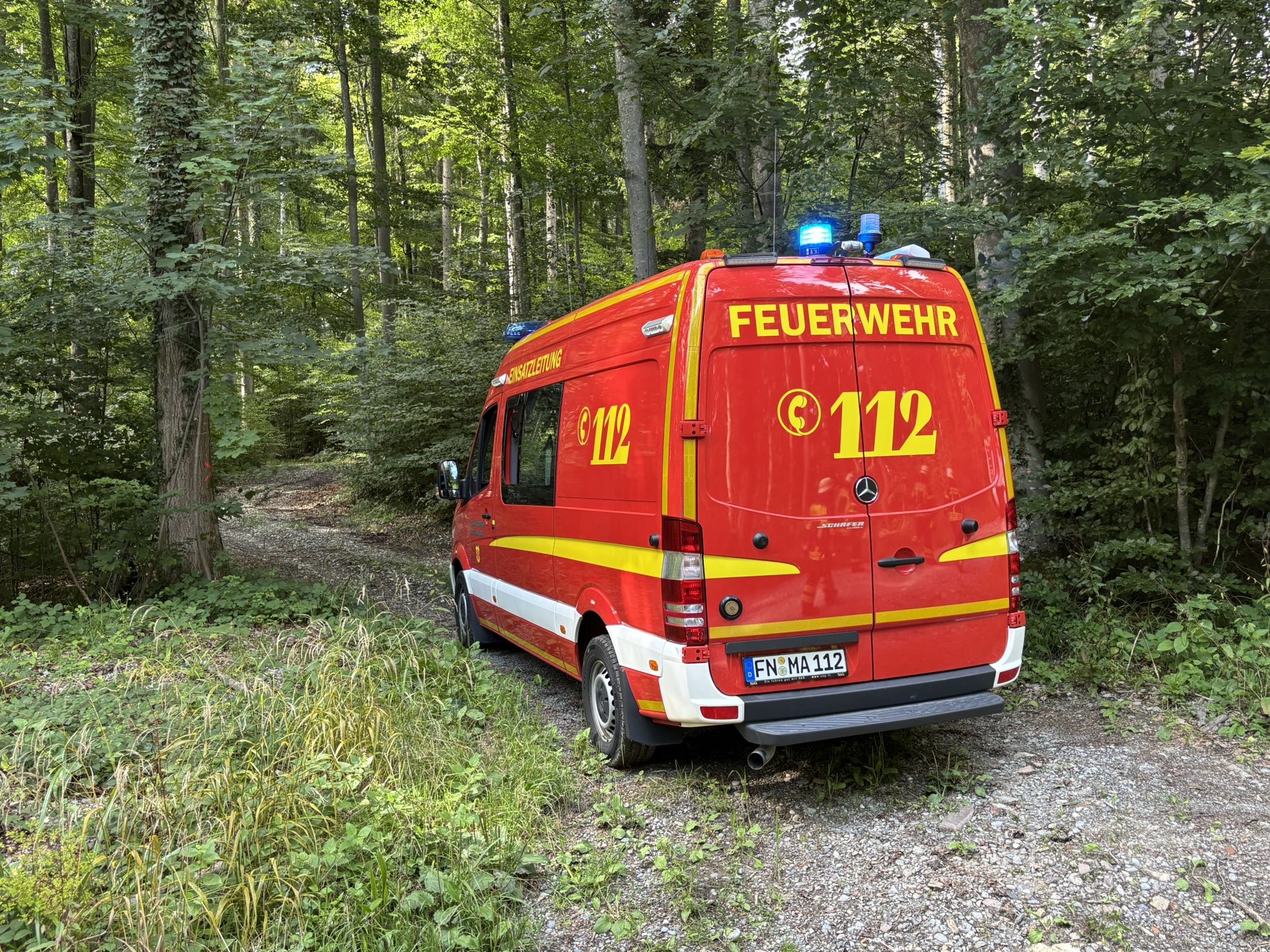 Zur Personenrettung aus unwegsamem Gelände wurden starke Kräfte der Abteilungen Riedheim und Markdorf-Stadt alarmiert.