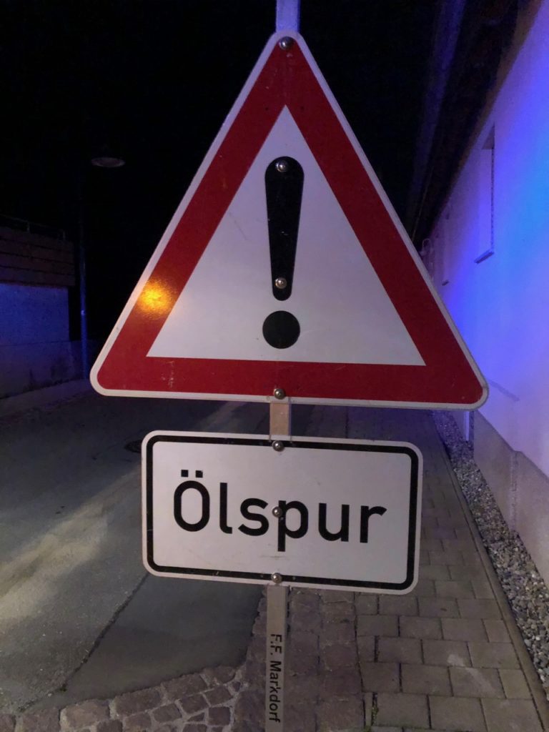 Bei Eintreffen der Feuerwehr hatte der Verursacher, die Ölverschmutzung bereits mit Sand abgestreut, so dass wir den Sand und das Öl nur noch aufkehren und Warnschilder aufstellen mussten, um die Verkehrssicherheit wieder herzustellen.