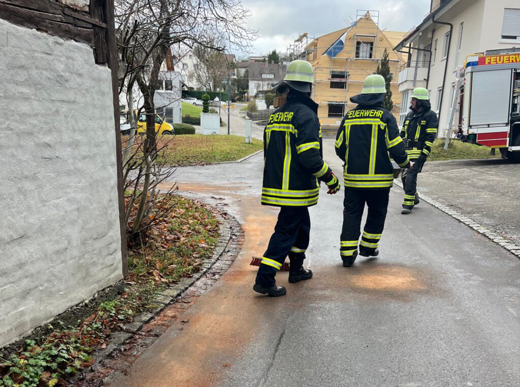 Am Montagnachmittag wurde die Abteilung Riedheim wegen einer Ölspur in Hepbach alarmiert. Hier galt es eine kleine Ölspur am Straßenrand über 100 m abzustreuen und das Bindemittel wieder aufzunehmen.