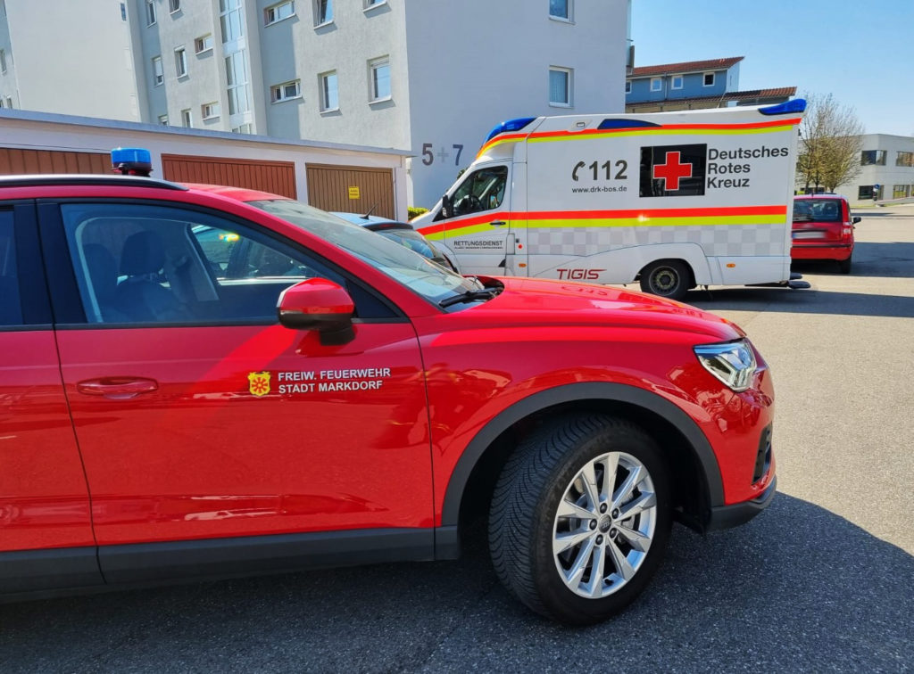 Da der Notarzt mit dem Rettungshubschrauber Christoph 45 für einen medizinischen Notfall in einem Mehrfamilienhaus in der Siemansstraße nicht vor Ort landen konnt, wurde er vom Kommandanten Daniel Kneule mit dem KdoW vom Landeplatz dort hin gebracht.