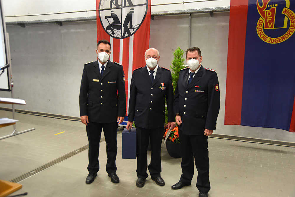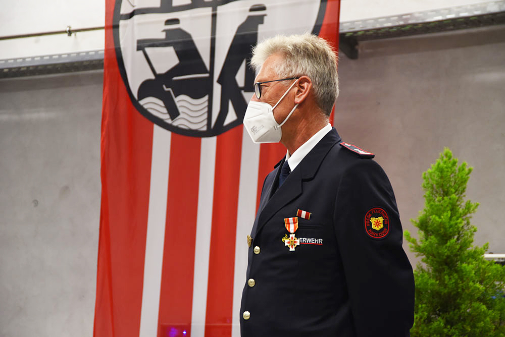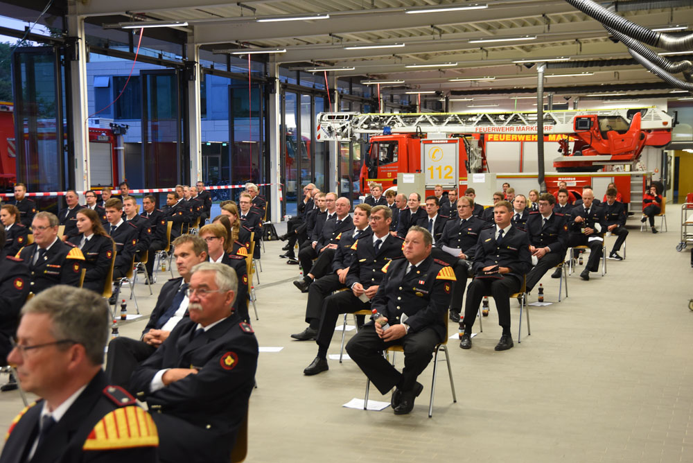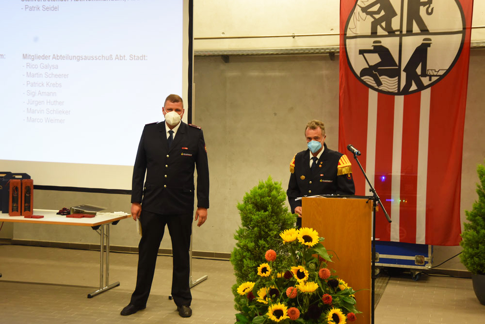 (25.9.2021) Die Jahreshauptversammlung der Freiwilligen Feuerwehr Markdorf fand aufgrund der Pandemielage, nicht wie üblich Anfang Januar statt, sondern wurde jetzt im September nachgeholt. Auch jetzt mussten wir aufgrund der Corona-Lage einige Kompromisse eingehen, so wurde die Versammlung nicht in der Stadthalle abgehalten, sondern in der Fahrzeughalle des Feuerwehrhauses. Gäste, der Spielmanns- und Fanfarenzug, die Jugendfeuerwehr und die Altersabteilung waren nicht anwesend, um die Versammlung recht straff und zügig, unter Beachtung der 3-G-Regeln und Einhaltung der Abstände, durchführen zu können.