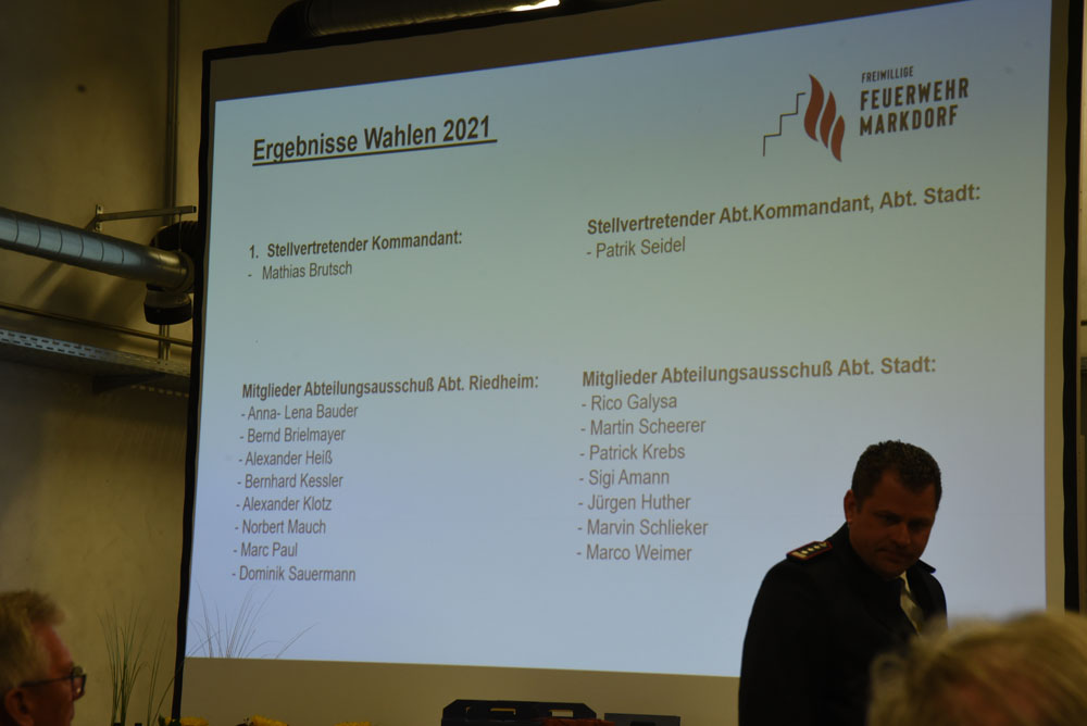 Neben der Entlastung der Wehrführung und des Kassiers, standen wichtige Wahlen auf der Tagesordnung. Als Nachfolger des ersten stellvertretenden Gesamtkommandanten Johannes Beck, der aus Altersgründen das Amt abgibt, wurde mit großer Mehrheit Mathias Brutsch gewählt, der als einziger Kandidat angetreten war. Da Mathias Brutsch diese Wahl erwartungsgemäß annahm, musste sein bisheriges Amt des stellvertretenden Abteilungskommandanten der Abteilung Markdorf-Stadt auch neu besetzt werden. Hier hatten sich Andreas Seiler, Rico Galysa und Patrik Seidel zur Wahl gestellt. Im zweiten Wahlgang gewann Patrik Seidel die Wahl zum stellvertretenden Abteilungskommandanten.