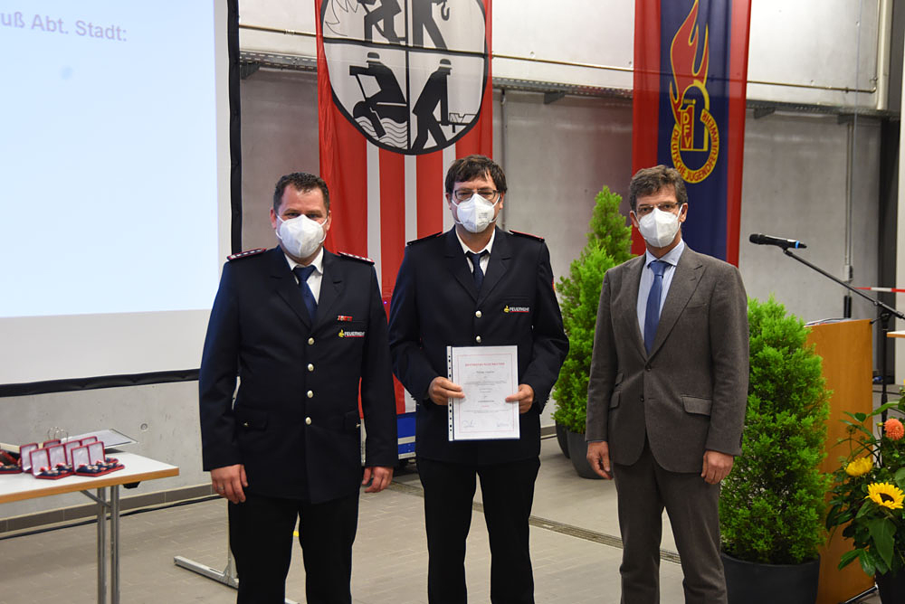 Anwesend waren, neben den Angehörigen der drei Abteilungen der aktiven Wehr, Bürgermeister Georg Riedmann, einige Vertreter des Gemeinderates und der Stadtverwaltung, der stellvertretende Kreisbrandmeister Alexander Amann, sowie der stellvertretende Vorsitzende des Kreisfeuerwehrverbandes Franz Burkhardt.