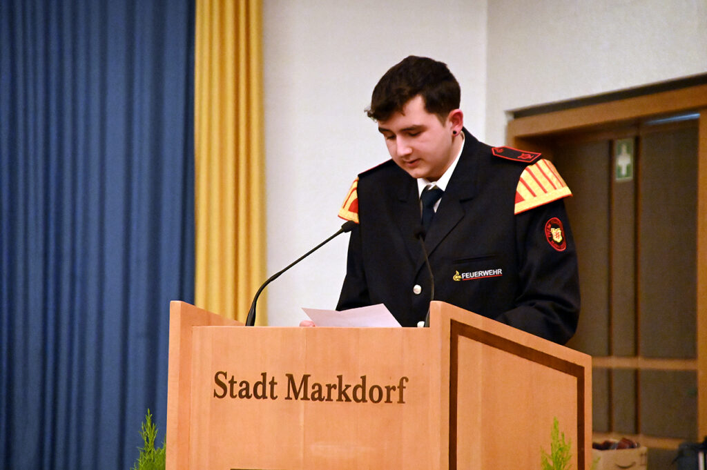 Marvin Schlieker wurde von Kommandant Tobias Lumb mit großem Dank von seinem Amt des Schriftführers entbunden, das er viele Jahre in vorbildlicher Perfektion für die Feuerwehr wahrgenommen hatte.