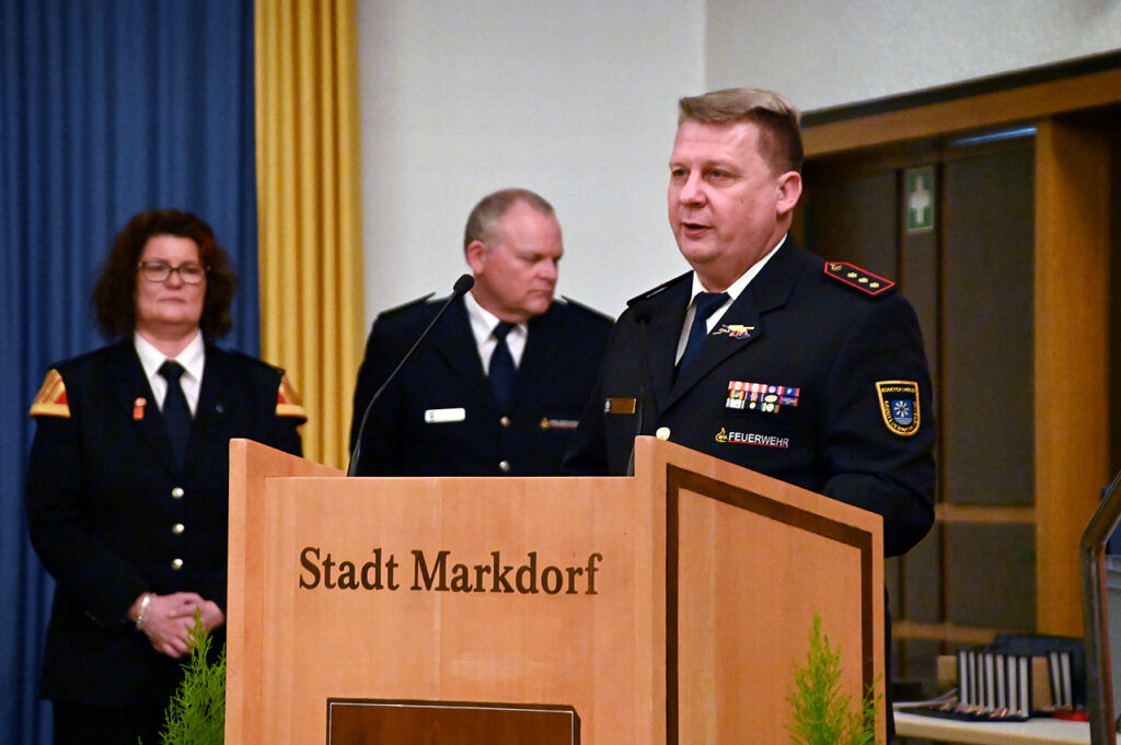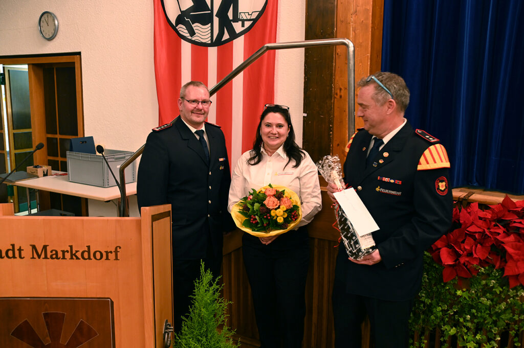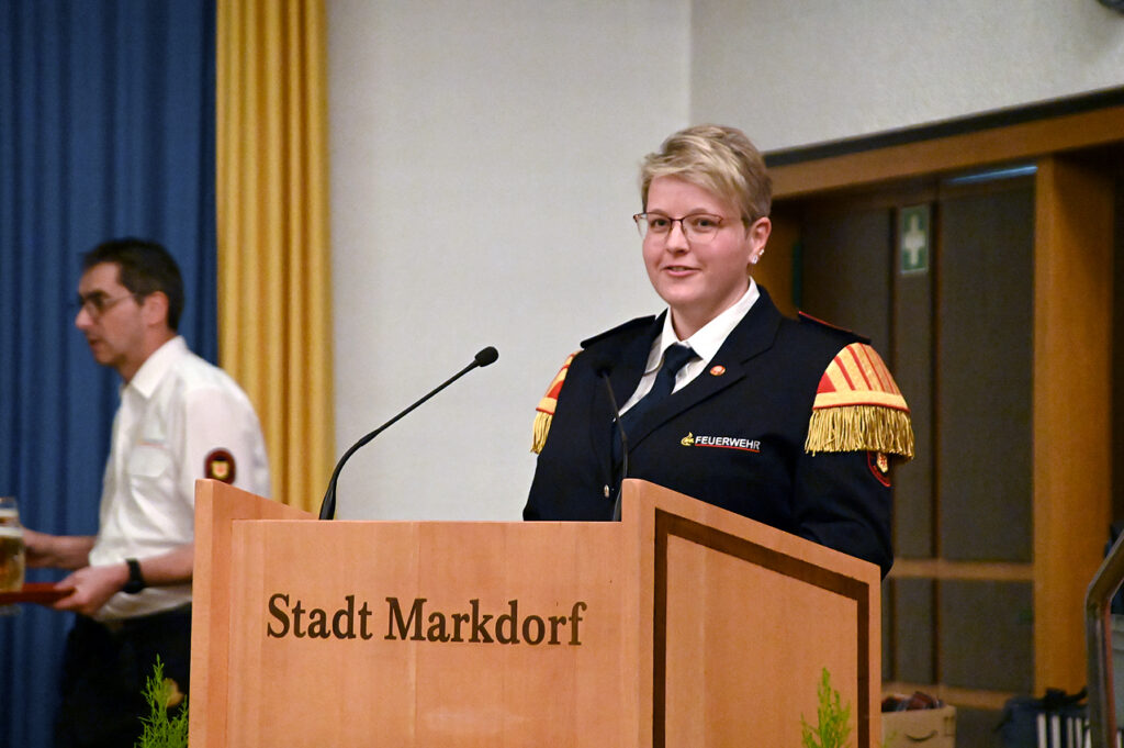 Neben Vertretern benachbarter Feuerwehren, war auch Bürgermeister Georg Riedmann, Stadtkämmerin Jeanett Meißner und einige Mitglieder des Gemeinderates anwesend.