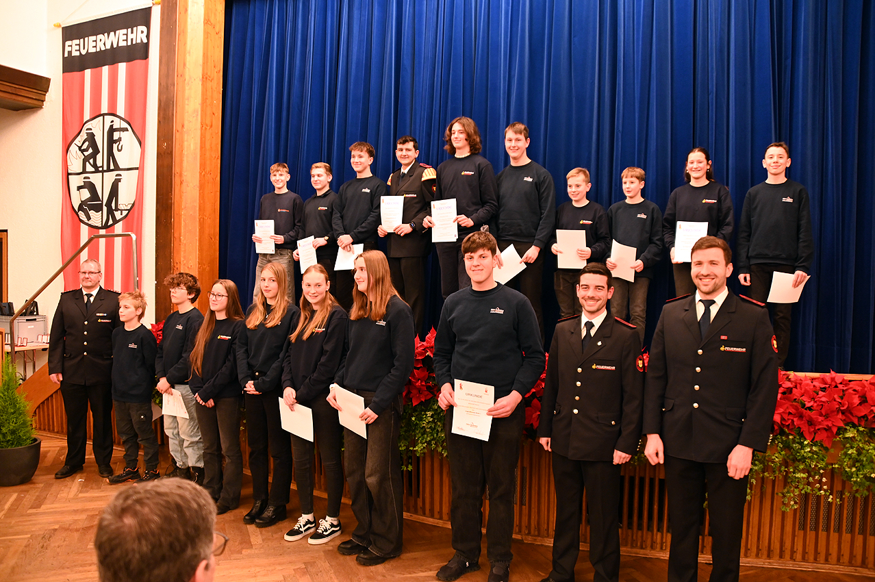 An der Jahreshauptversammlung werden auch viele Ehrungen von verdienten Feuerwehranghörigen ausgesprochen. Den Anfang machte die Jugendfeuerwehr, wo der Nachwuchs ausgezeichnet wurde: